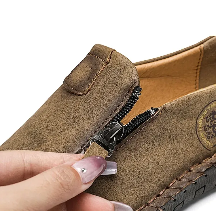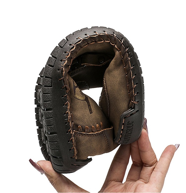 A Hand Stitching Leather upper with neat fine stitching for an extraordinarily strong pair of loafers. With a cork surface and mesh fabric-covered EVA insole, these loafers are perfect for long-term wear. In conjunction with the flexible EVA outsole, these pairs of loafers provide great durability.